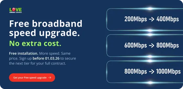 All of the broadband products offered by Love Energy Savings come with unlimited downloads and data usage.